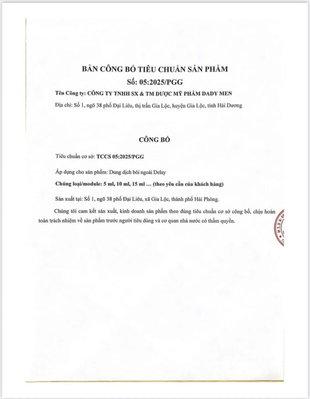 Sản phẩm do Công ty TNHH SX & TM Dược Mỹ Phẫm Dady Men